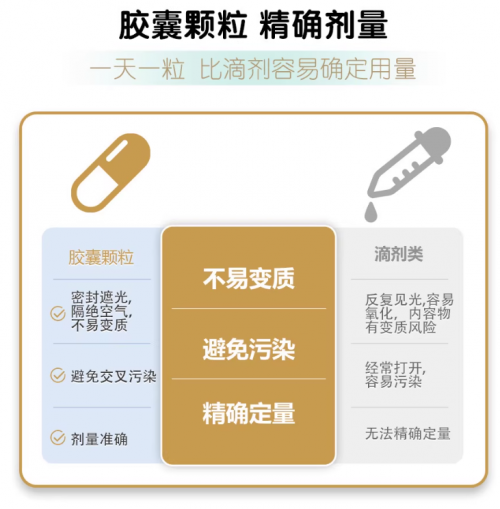 根据日常场景选择合适剂型——通勤族、学生选胶囊、咀嚼片;低龄宝宝选滴剂、易剪开胶囊;居家人群选片剂、颗粒。避免选择与场景不适配的产品,比如给经常出差的人买需冷藏的滴剂,很难长期坚持服用。