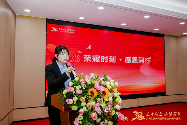 ▲广州仁爱天河医院副院长韦清宣读表彰文件