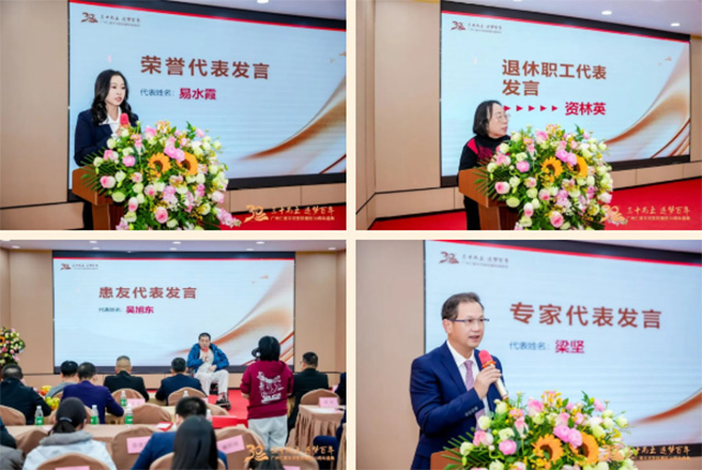 荣誉代表易水霞主任、退休职工代表资林英主任分享了与医院共成长的温暖故事,专家代表梁坚教授、患者代表讲述了医患同心的感人经历,现场掌声不息。
